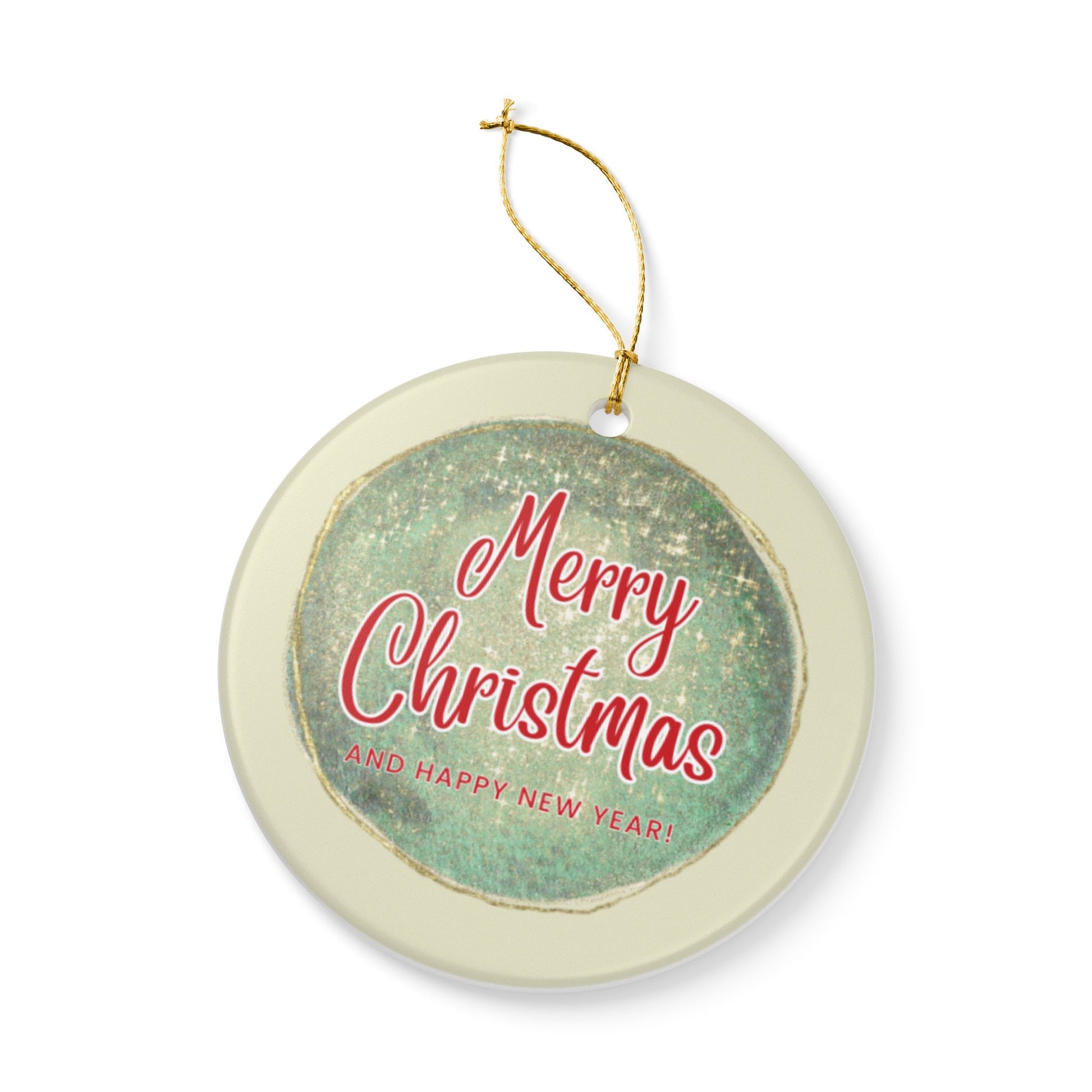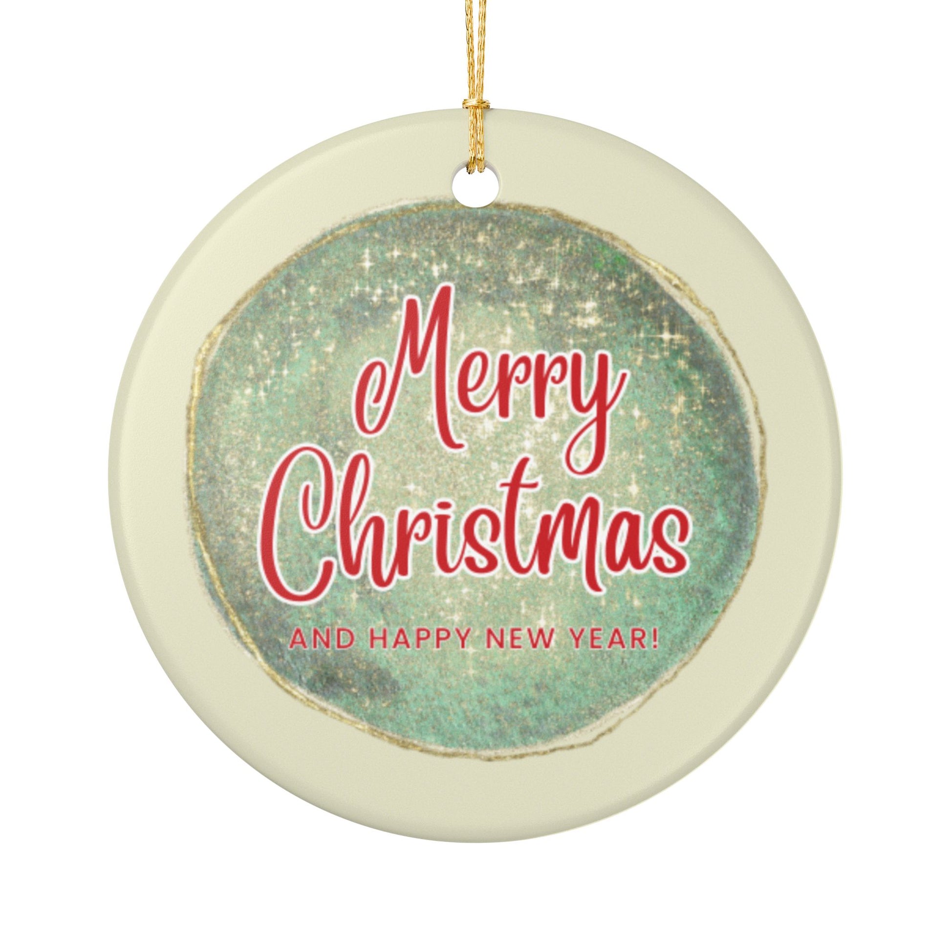 “Merry Christmas and Happy New Year” Ceramic Ornament
