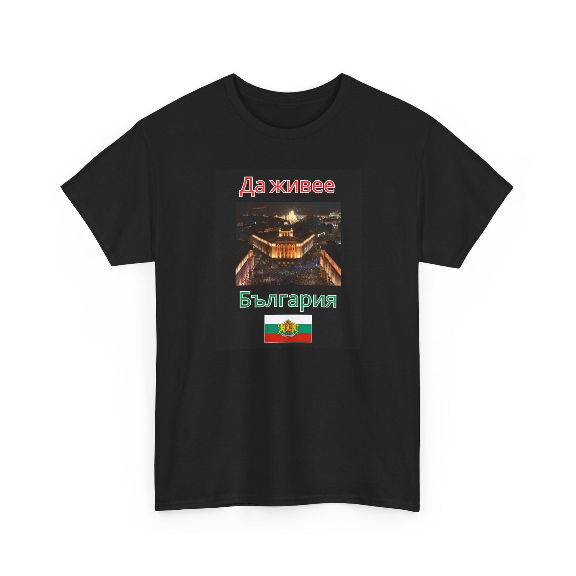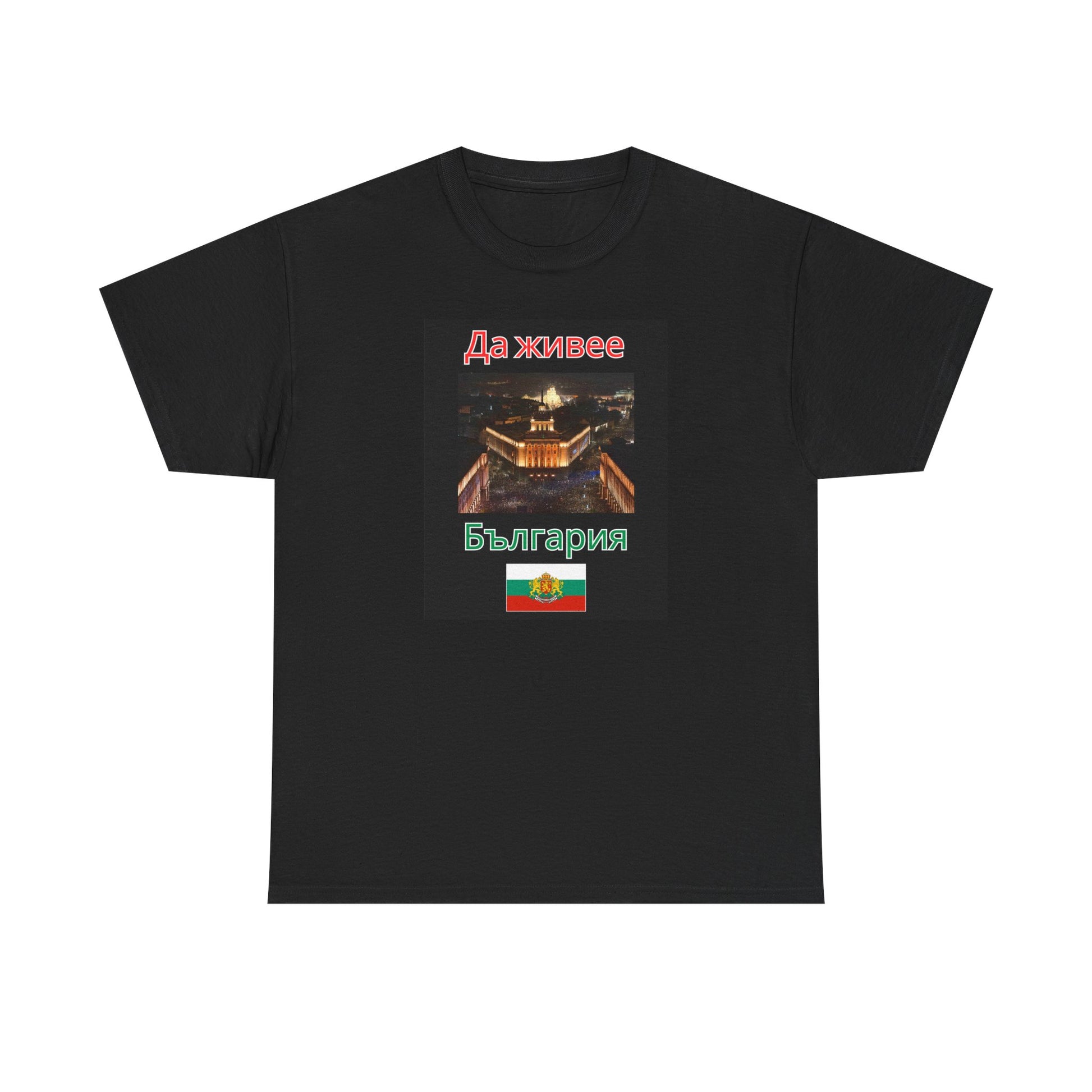 Crafted from soft yet durable 100% cotton, the shirt delivers a smooth feel against the skin and a sturdy structure that holds up to frequent wear. The fabric provides an ideal surface for high-quality printing, ensuring that the artwork remains vivid and sharp over time. On the front, a warm, golden-lit night scene creates an inviting backdrop for the bold Cyrillic message “Long Live Bulgaria”, complemented by a small, tastefully placed Bulgarian flag beneath it. 🌙 The design is intentionally understated — not loud, but proud — making it suitable for cultural gatherings, casual outings, or peaceful evening walks. 🌆