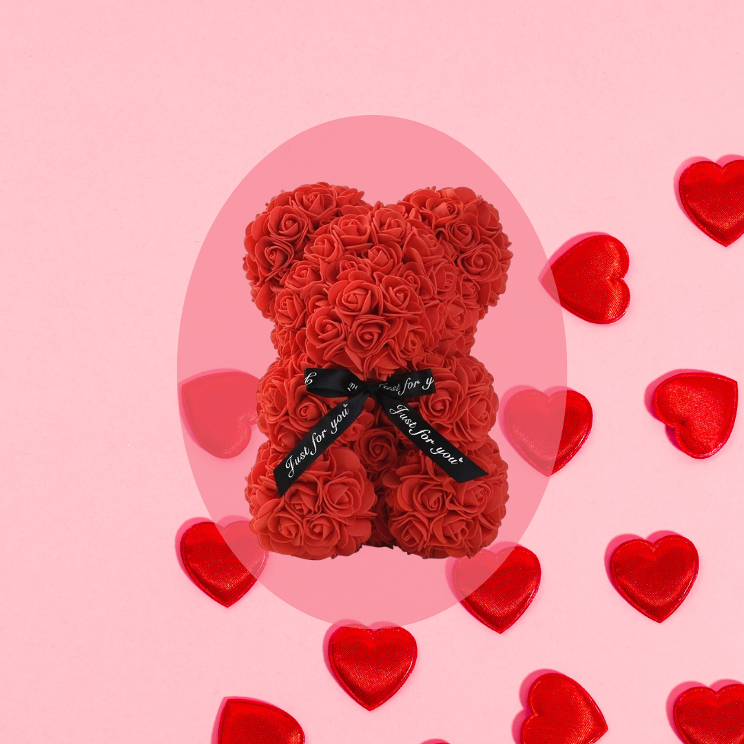 Make this Valentine’s Day unforgettable with the enchanting Red Rose Teddy Bear, a perfect symbol of love and devotion. Standing at 25 cm tall, this beautifully crafted bear is made entirely from synthetic polyethylene foam roses, giving it a unique and elegant appearance that will never fade or lose its charm. Each rose is meticulously arranged, creating a plush and textured look that blends timeless romance with a playful and heartwarming design.